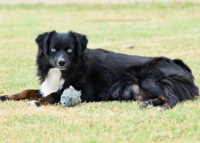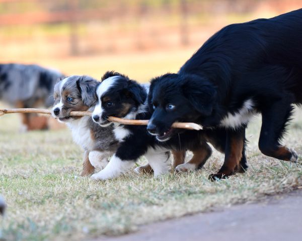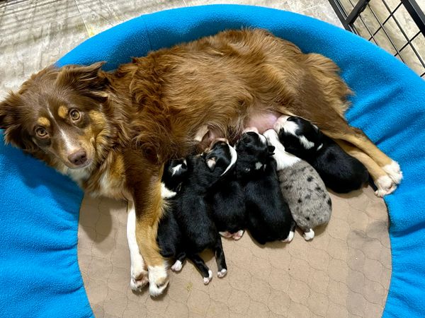 Daisy has been a wonderful addition to our program - she came to us as an adult and fit right in . She is a happy girl and likes to be near us in true Aussie form. She is medium energy and drive - adjusting well to day hikes or rainy days on the couch. Daisy is duel registered with ASDR as Toy Australian Shepherd and with AKC as Miniature American Shepherd. She is full panel clear on Paw Prints genetic testing. Daisy is 12.5" tall and 14 lbs. and has an excellent structure. She is a wonderful mother and we are seeing her excellent temperament in her puppies.
